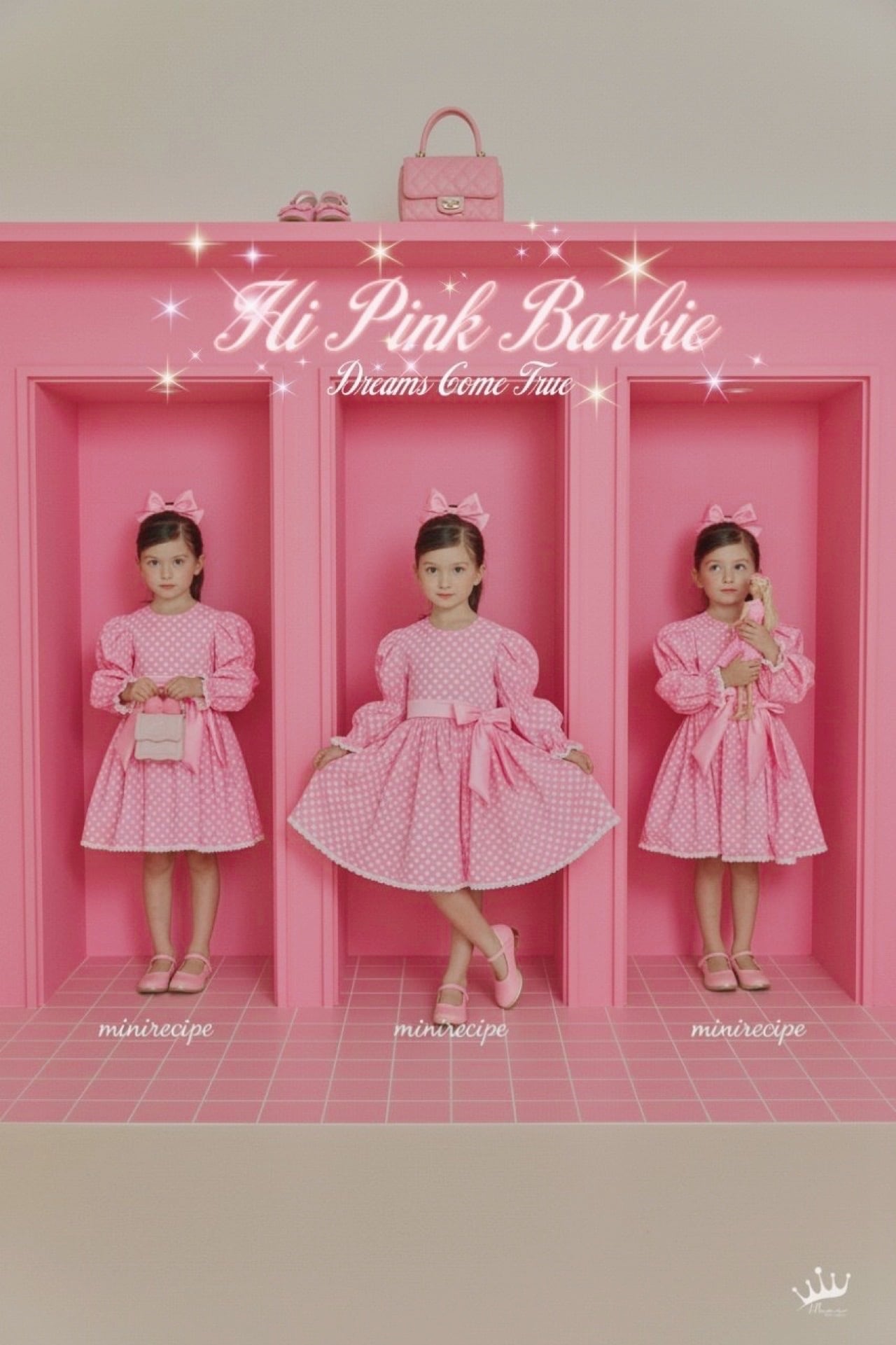 ※小さなシミ有※【即納】<minirecipe> Pink dolly one-piece (ヘアリボン付き)