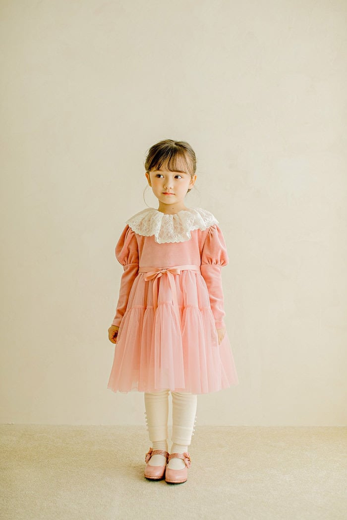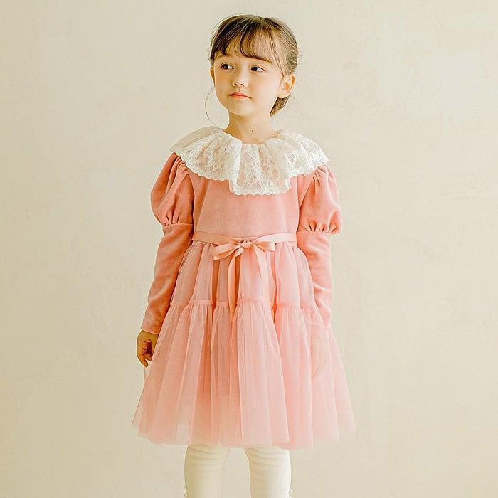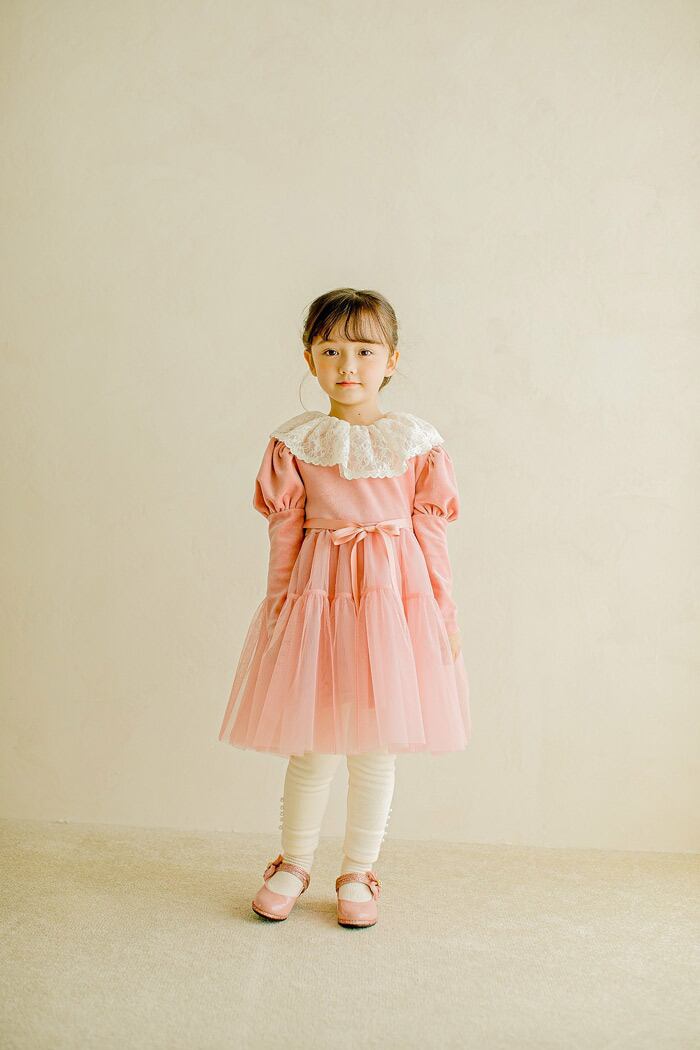 ラスト1 pink5【即納】<PUDDING> Lace frill dress