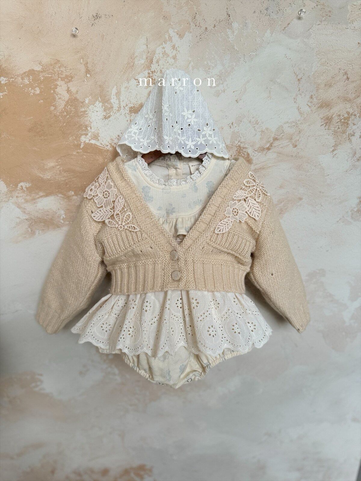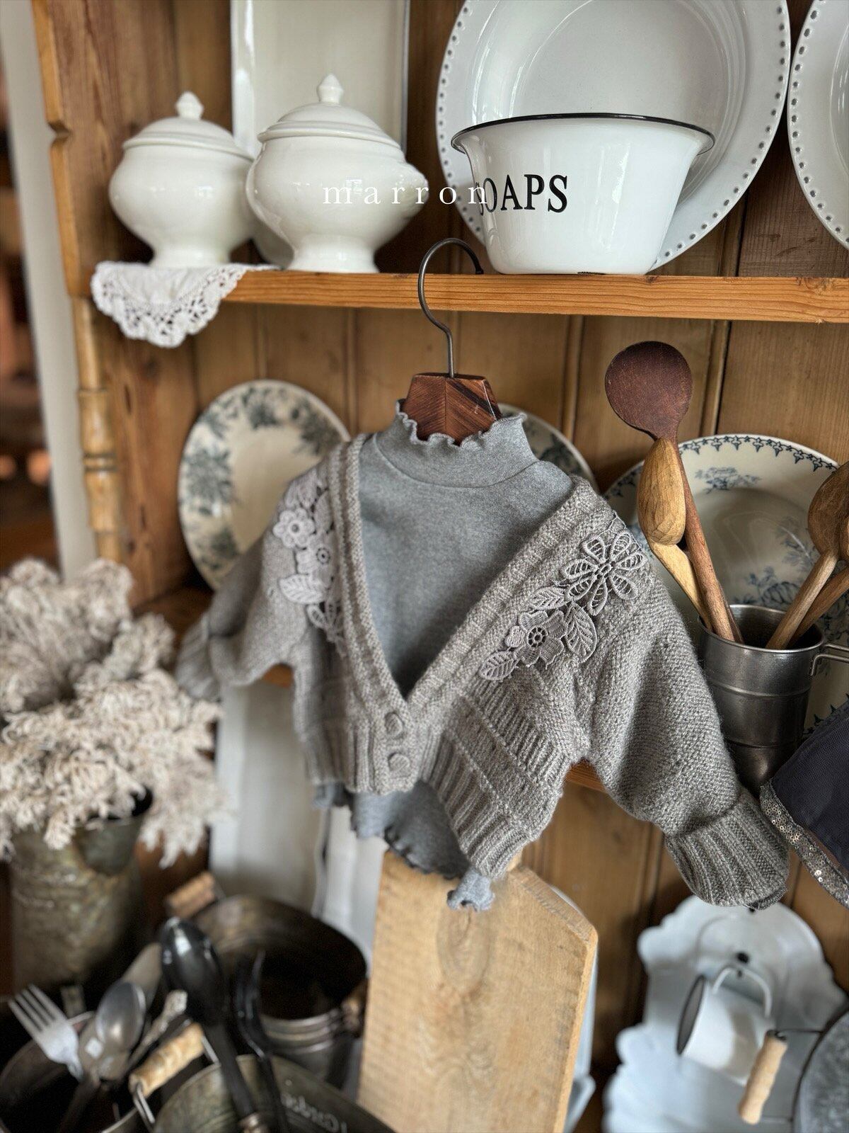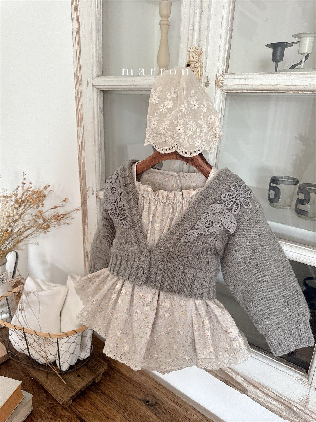 ラスト1 beige L【即納】<marron> Flower cardigan