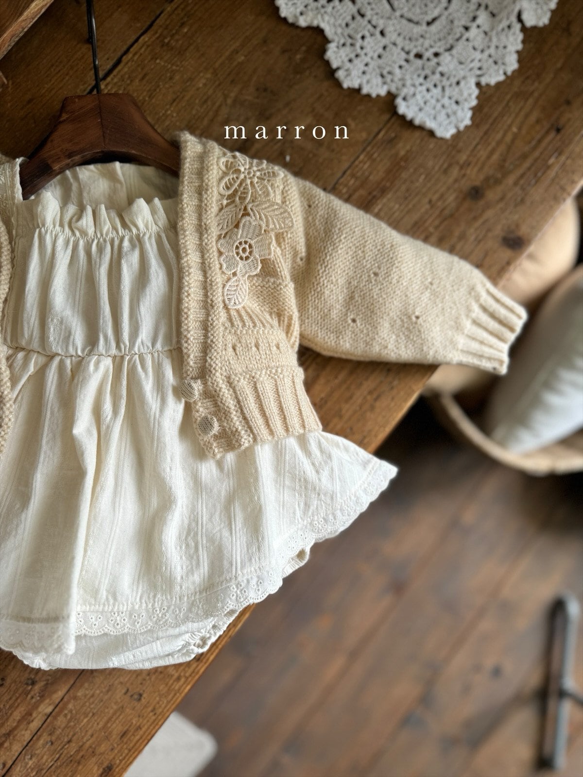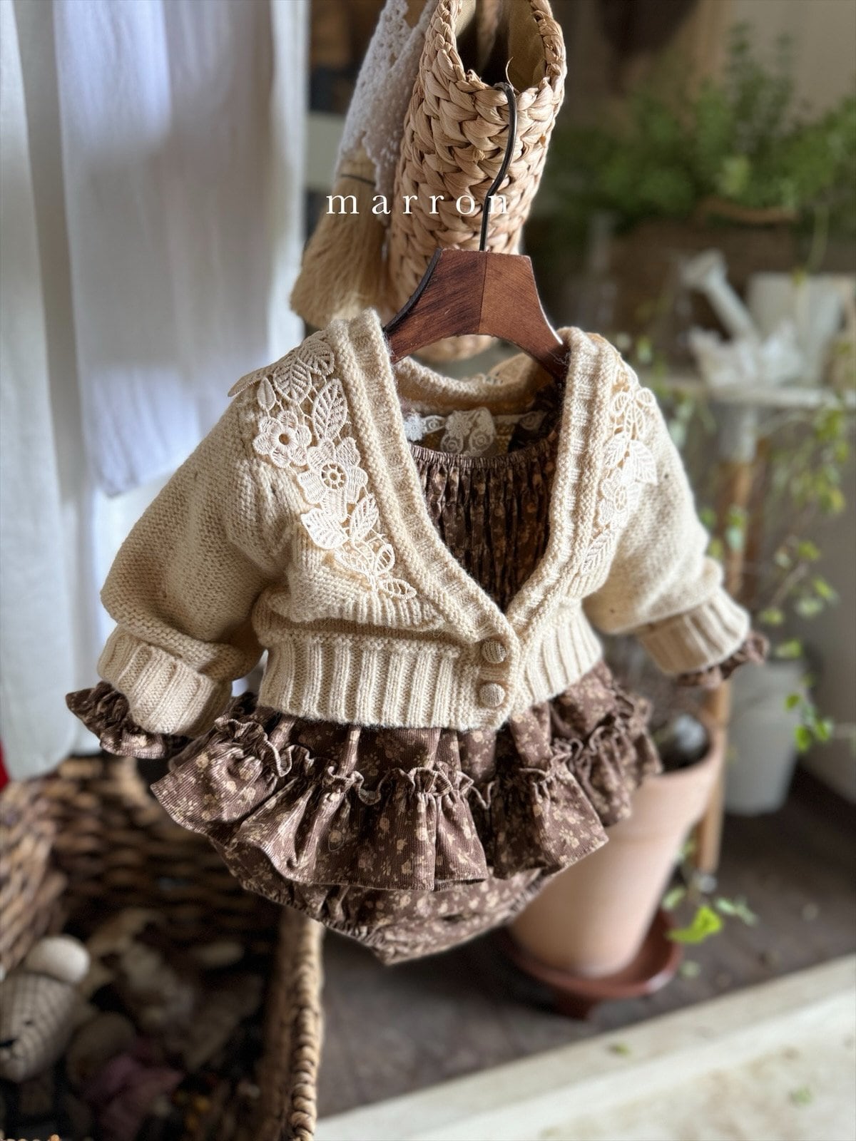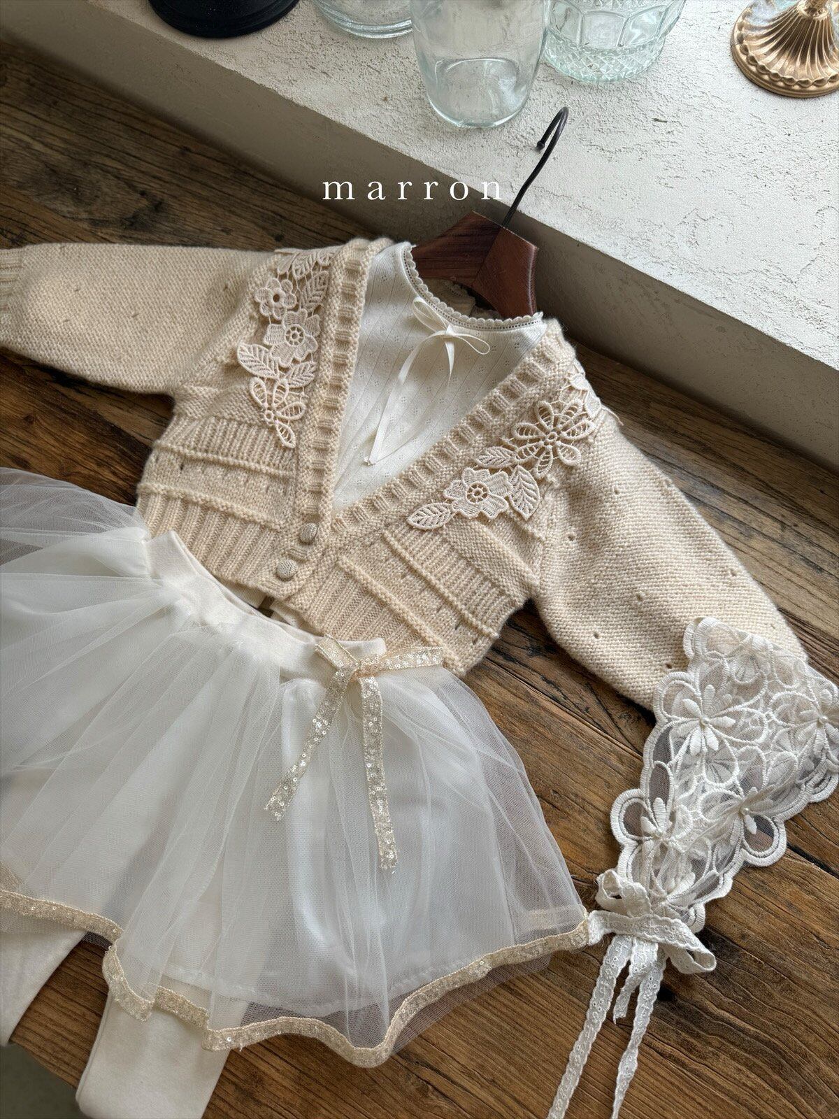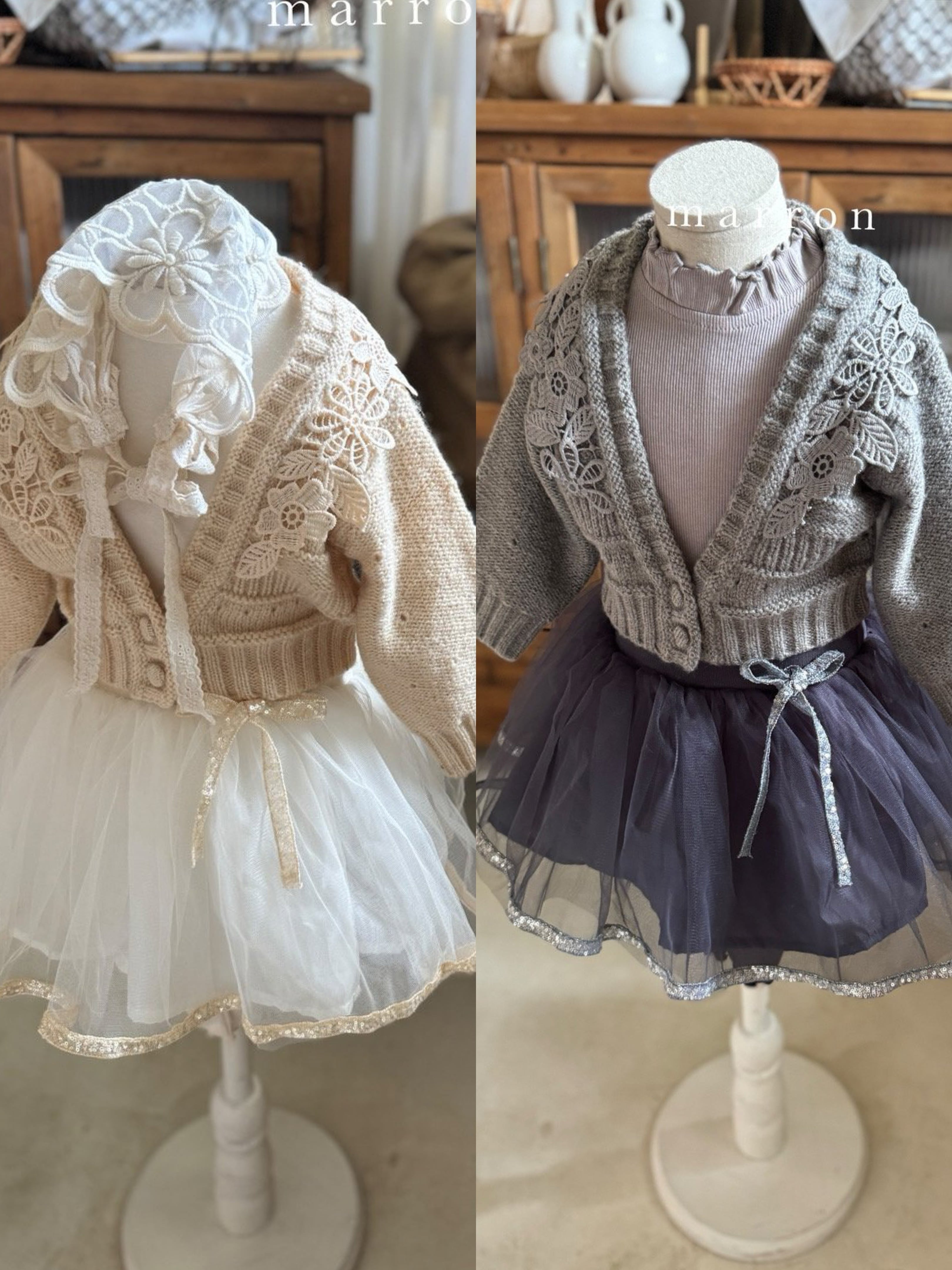 ラスト1 beige L【即納】<marron> Flower cardigan