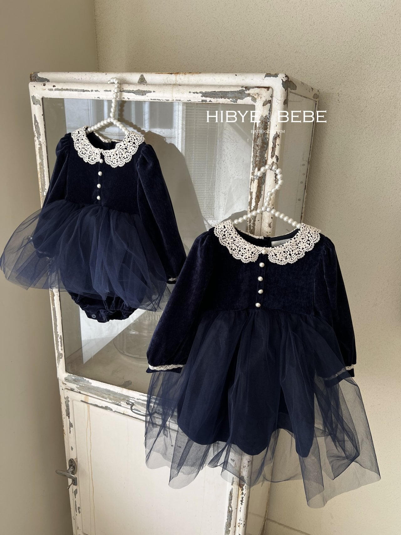 ラスト1 navyL【即納】<Hibyebebe> Dior sha one-piece